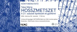 Előadók: Gerőházi Éva, Teller Nóra, Tosics Iván Bugár-Mészáros Károly előadása A könyv a TIBA Építész Stúdió elmúlt húsz évének munkáit foglalja össze. Kiállításmegnyitó esemény 2026. február 18-án szerdán 18 órakor.