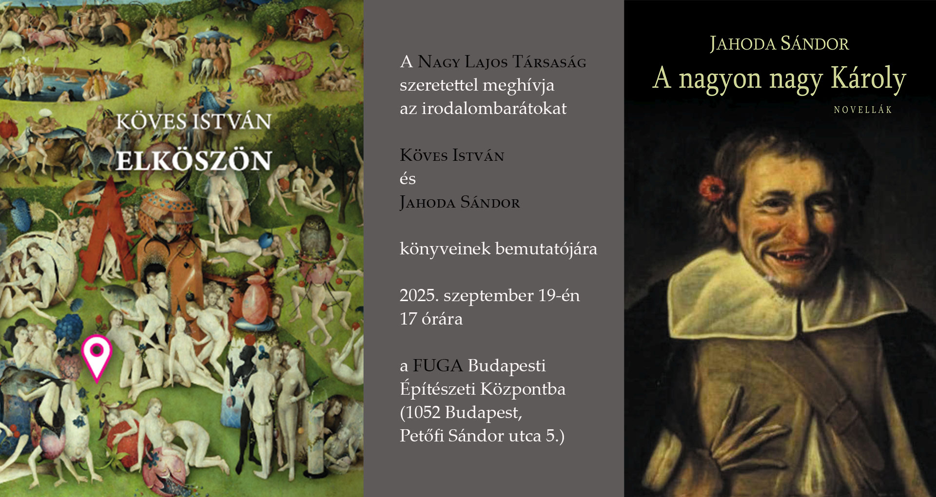 A Nagy Lajos Társaság szeretettel meghívja az irodalombarátokat Köves István és Jahoda Sándor könyveinek bemutatójára.