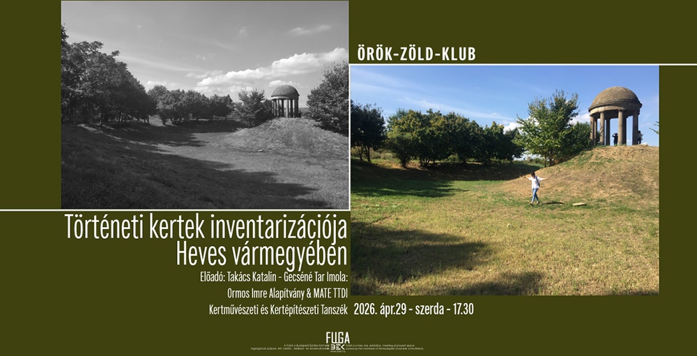 Az előadás a 2017-ben megkezdett hazai történeti kert inventarizáció keretében, – Komárom-Esztergom vármegyét követően – másodikként feldolgozott vármegye történeti kertjeit mutatja be. 2021 és 2024 között Takács Katalin és Gecséné Tar Imola vezetésével és a MATE Tájépítészeti, Településtervezési és Díszkertészeti Intézete kertművész mesterszakos tájépítész hallgatói bevonásával készült el Heves vármegyében az inventarizációs munka az Ormos Imre Alapítvány és a Magyar Művészeti Akadémia támogatásával. A megyében közel 70 kertművészeti értékkel rendelkező történeti helyszín bejárására és összeírására került sor, amelyek között országos és helyi jelentőségű kastélyparkok, kúriakertek, villakertek, közparkok, vadászkastélyok és uradalmi majorok kertjei, valamint erdészeti arborétumok és elpusztult korábbi történeti kertek is megtalálhatóak.