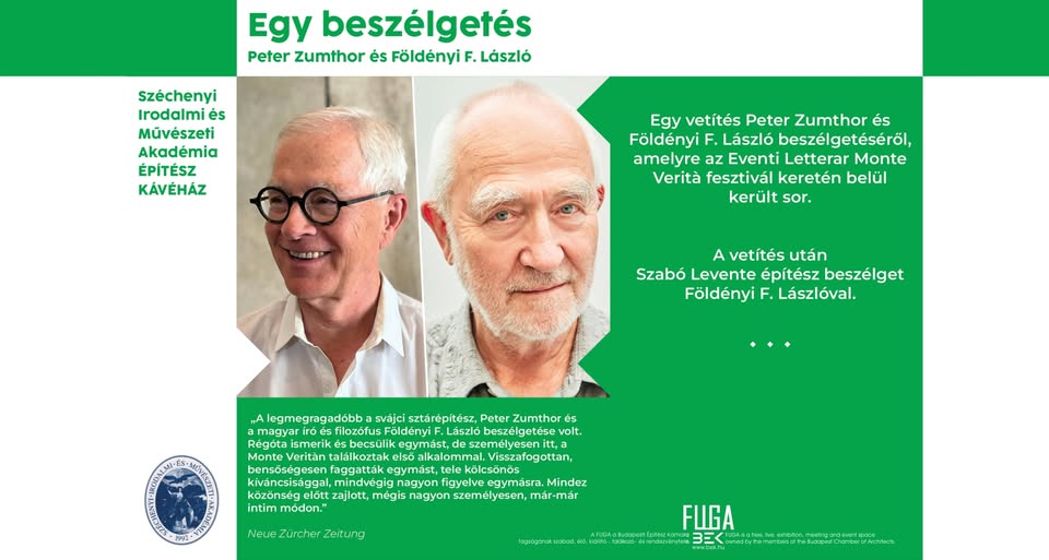 Vetítés: Peter Zumthor és Földényi F. László beszélgetése s svájci Eventi letterari Monte Verità eseményén.